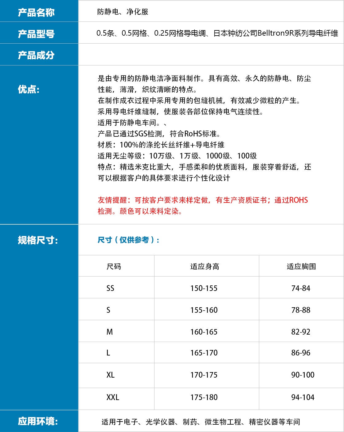 - 所屬分類:防靜電、凈化服裝系列