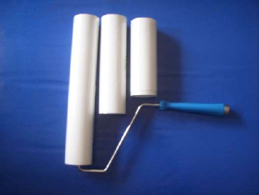 粘塵滾筒式由帶粘膠的薄膜帶和滾筒把手組成,薄膜上涂有特殊研制的膠水使粘性更強更易除去物體表面的微塵。